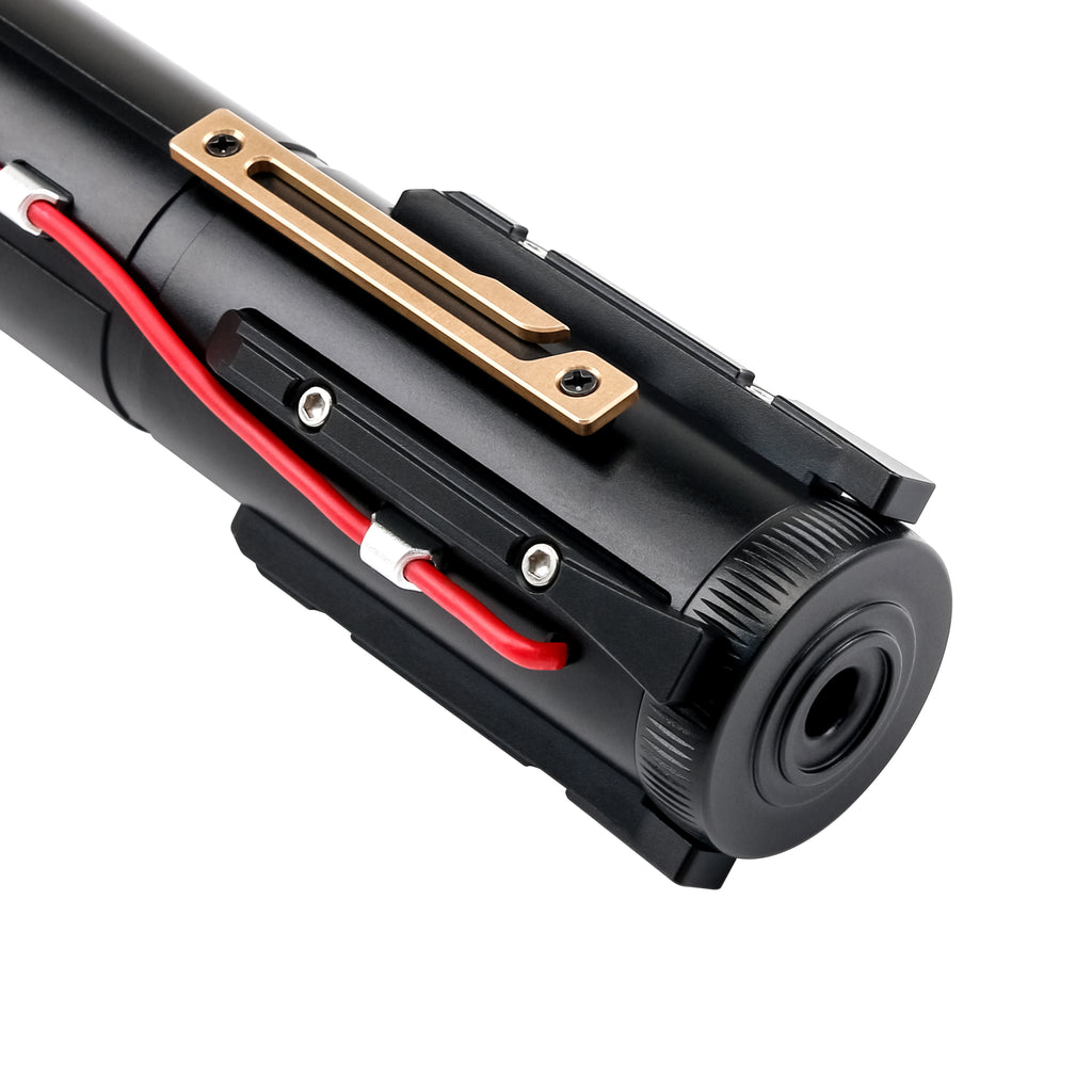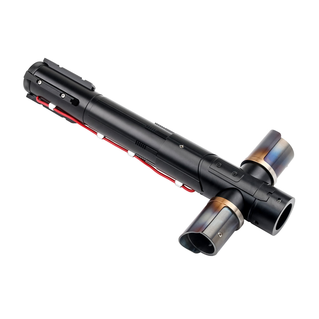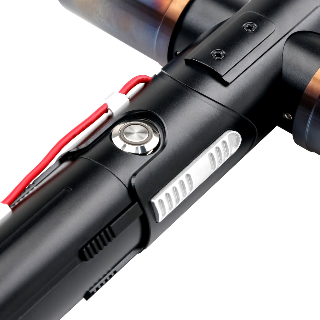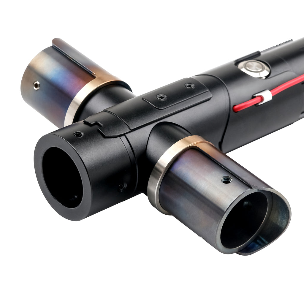 Needing no introduction, Kylo SE is a homage to the legendary double-bladed lightsaber wielded by Darth Maul. This model consists of two sabers that can be put together to create a saber staff. With its sturdy aluminum hilt, durable dueling blades, motion based sound effects, comprehensive visual effects, many different soundfonts, and changeable blade colors, Maul can be wielded in an infinite number of ways.